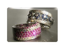 TAJ Ruby Wave & Sapphire Flower Diamond Rings-18K Gold |