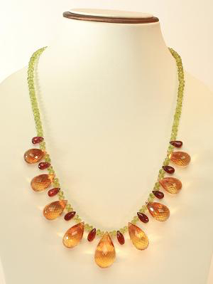 TAJ Citrine Briolettes, Garnet, & Peridot Fancy Necklace