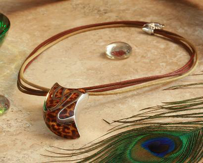 TAJ Leopard 925 Silver Enamel Pendant with Leather Necklace