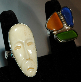 Bone & Beach Glass 925 Silver Rings