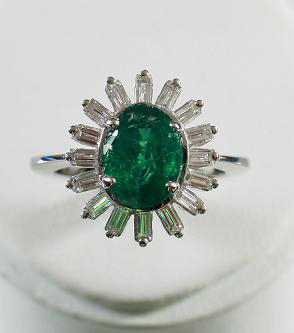 TAJ Emerald Bagutte Diamonds 18K Gold Ring