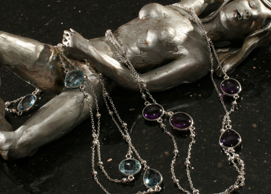 TAJ Artisan Jewelry- Blue Topaz & Amethyst 925 Silver Necklaces