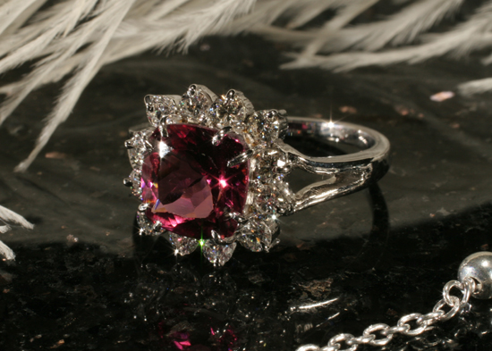 TAJ Artisan Jewelry- TAJ Pink Tourmaline & Diamond 18K Ring