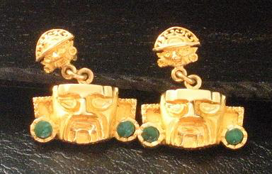 Inka Treasures Chrysocolla Tumi 18K Gold Earrings